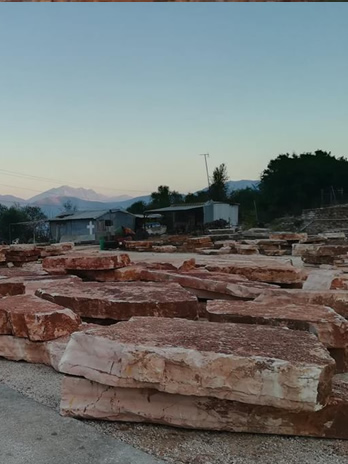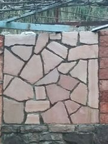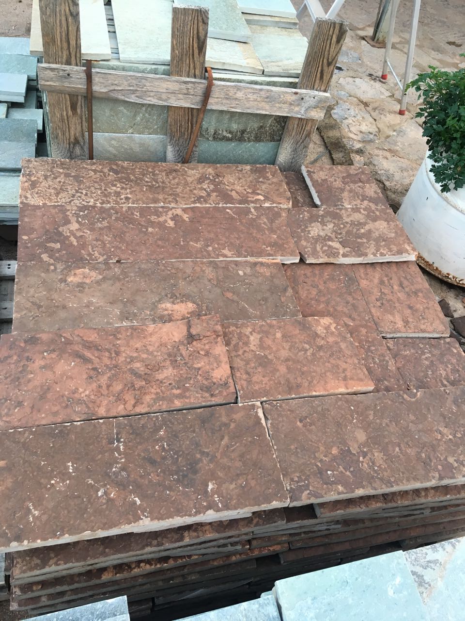 Πλάκες Αντικέ Ρετάλια ροζέ, καφέ και κόκκινου μαρμάρου πάχους 2εκ. χτυπημένα κομμάτι κομμάτι.